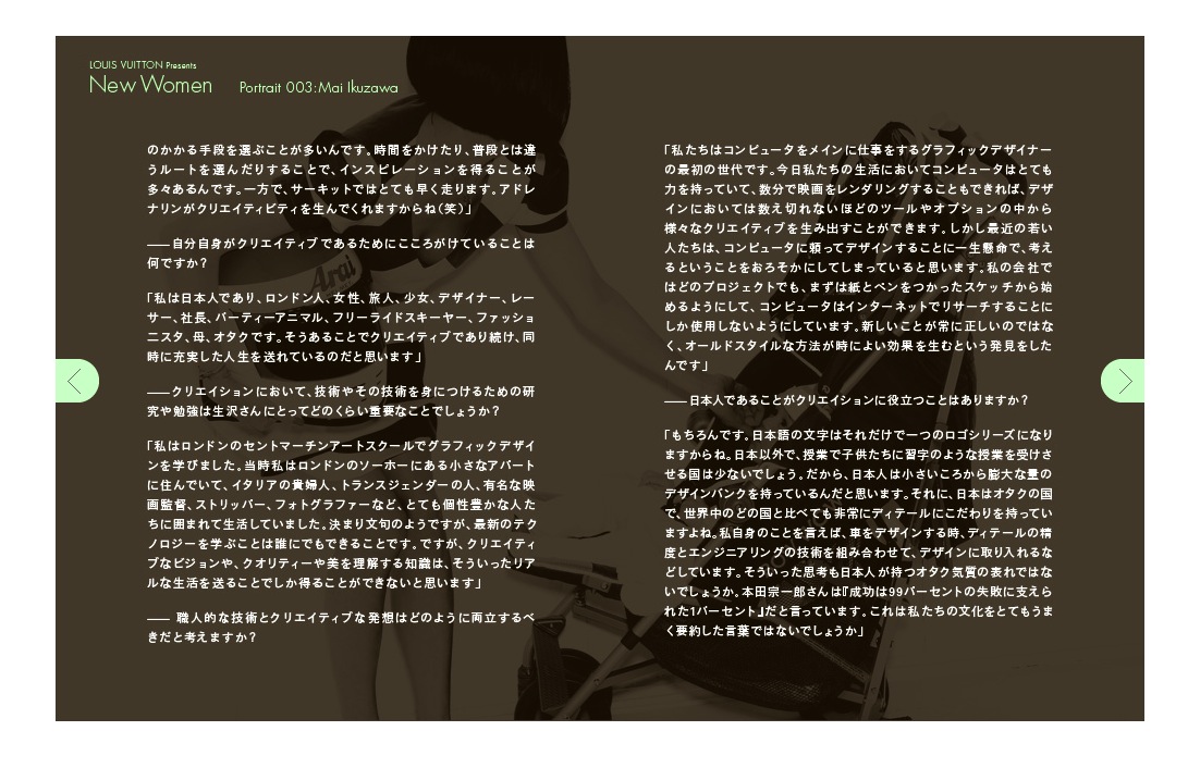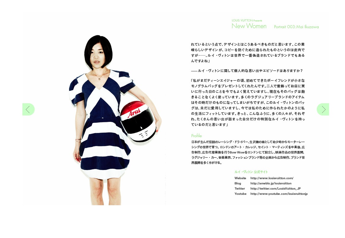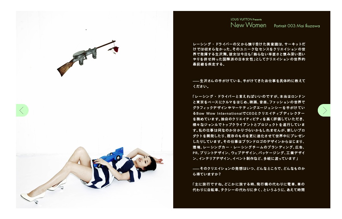 Japan is still regarded as the most important market for the luxury brand Louis Vuitton. In 2011, Mai Ikuzawa was chosen as one of three Louis Vuitton’s 'New Women’.